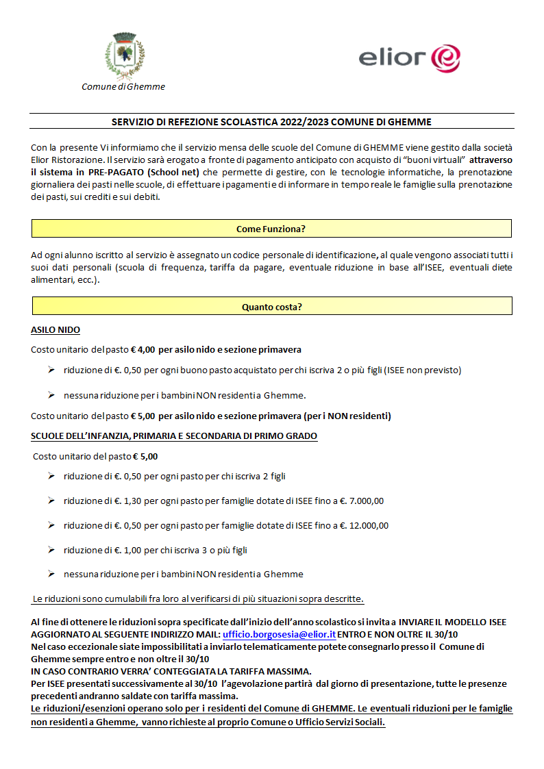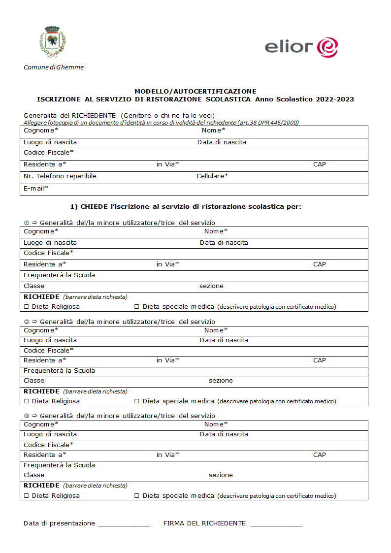 ISCRIZIONI SERVIZIO MENSA 2022-2023